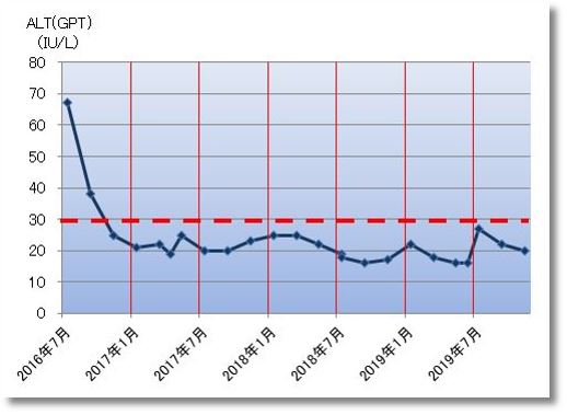 通院している栗原クリニック東京・日本橋の栗原毅先生から与えられた、ALT(GPT)の目標20(IU/L)以下を目指して肝機能の改善を継続しています。ALT(GPT)とは、アミノ酸代謝やエネルギー代謝で重要な働きをする肝臓にある酵素のことで、肝臓に障害があるとこのALT(GPT)が血中に漏れ出てきて数値が上昇します。つまり、ALT(GPT)の数値を下げるには、まず肝臓についてしまった脂肪を落として肝...