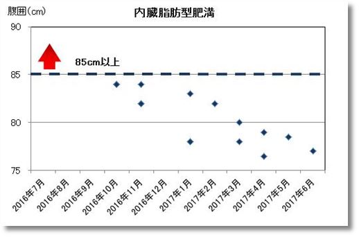 食事管理と運動による減量を始めた2016年7月から2か月後の9月頃には、腹囲が85cmを下回って、既にメタボを脱してはいましたが、その後のメタボ診断基準値の変遷を以下にまとめてみました。必須項目内臓脂肪型肥満まずは、内臓脂肪型肥満を診る腹囲です。2016年9月に85cmを下回ってから、着実に減ってきています。ここまで細くなると流石にこれまでのズボンは穿けなくなってしまいます。見た目でも細くなったの...