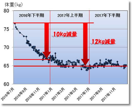 本格的なダイエットを開始したのが2016年7月7日。それから1年半が経過しました。最初の半年はかなり強引な食事制限で急激に10kgほど減量しましたが、次の2017年上半期はドクターのアドバイスに従ってペースを落とし、半年間で2kg程度の減量にとどまりました。2017年下半期になると、同じことをやっていてはもうなかなか体重が落ちなくなってきました。むしろ2017年下半期の前半は、体重が1〜2kg戻っ...